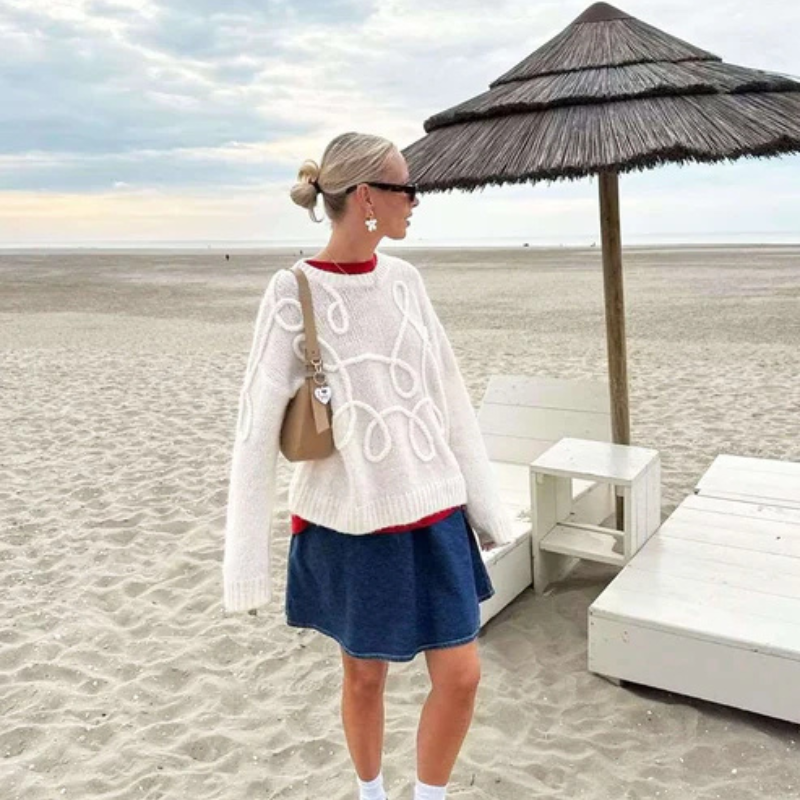 Womens pullover sweater designed for modern layering and relaxed refinement. Soft knit with sculptural detailing adds texture and understated luxury. Perfect for cozy mornings, weekend escapes, or effortless city styling.