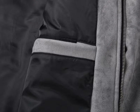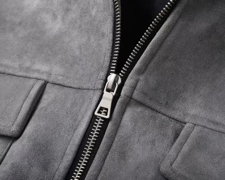 A men’s jacket designed with a structured silhouette, front zip fastening, and dual chest pockets for a refined utilitarian edge.