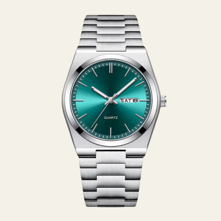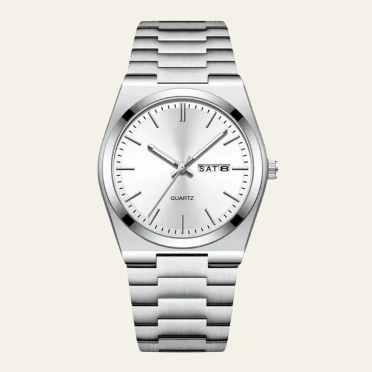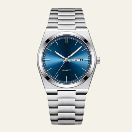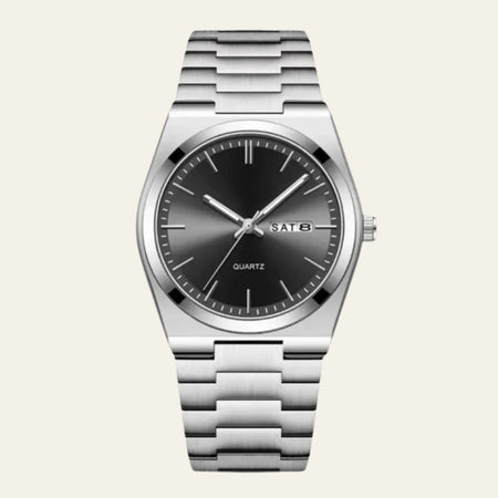 The Marine Quartz Watch combines bold functionality with refined aesthetics. Featuring a robust stainless steel case and bracelet, these watches are available in sleek black or sophisticated silver-white dials. Ideal for professionals and connoisseurs, the chronograph functions add a sporty edge to an otherwise classic design.