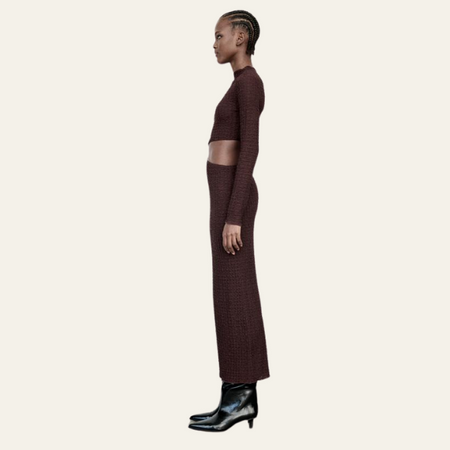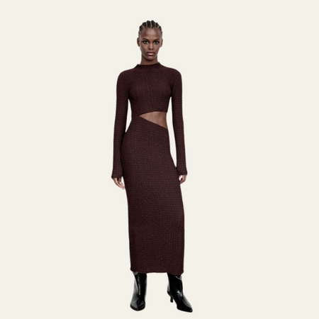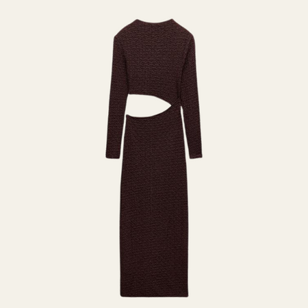 A women’s cutout maxi dress crafted for timeless European elegance and contemporary refinement. Featuring long sleeves and an asymmetric waist cutout, it blends understated sophistication with modern allure. Perfect for evening gatherings or heritage dinners, styled with heeled sandals and delicate jewelry.