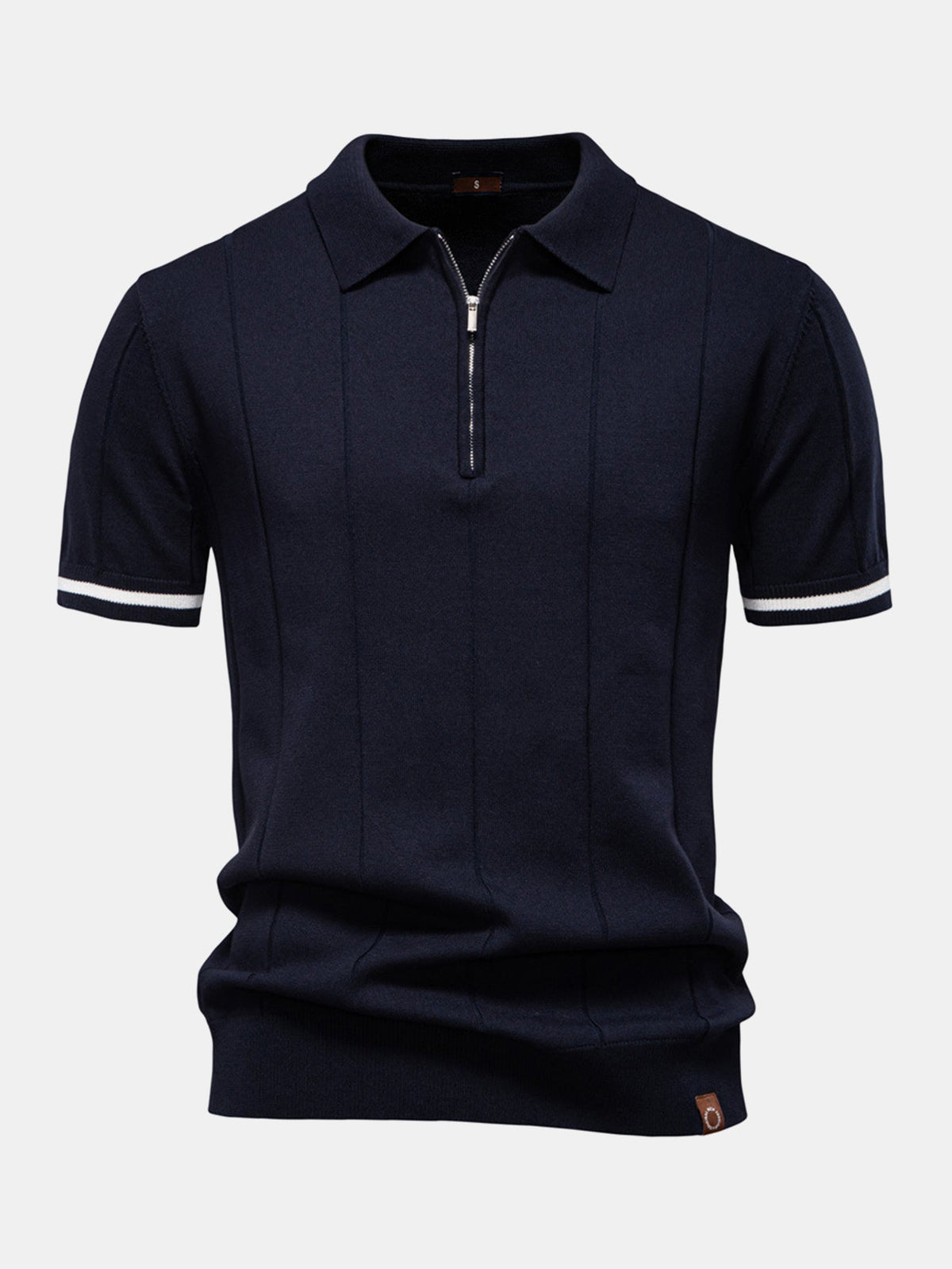 Contrast Trim Zipper Knit Polo Shirt & Slim Fit Tapered Trousers