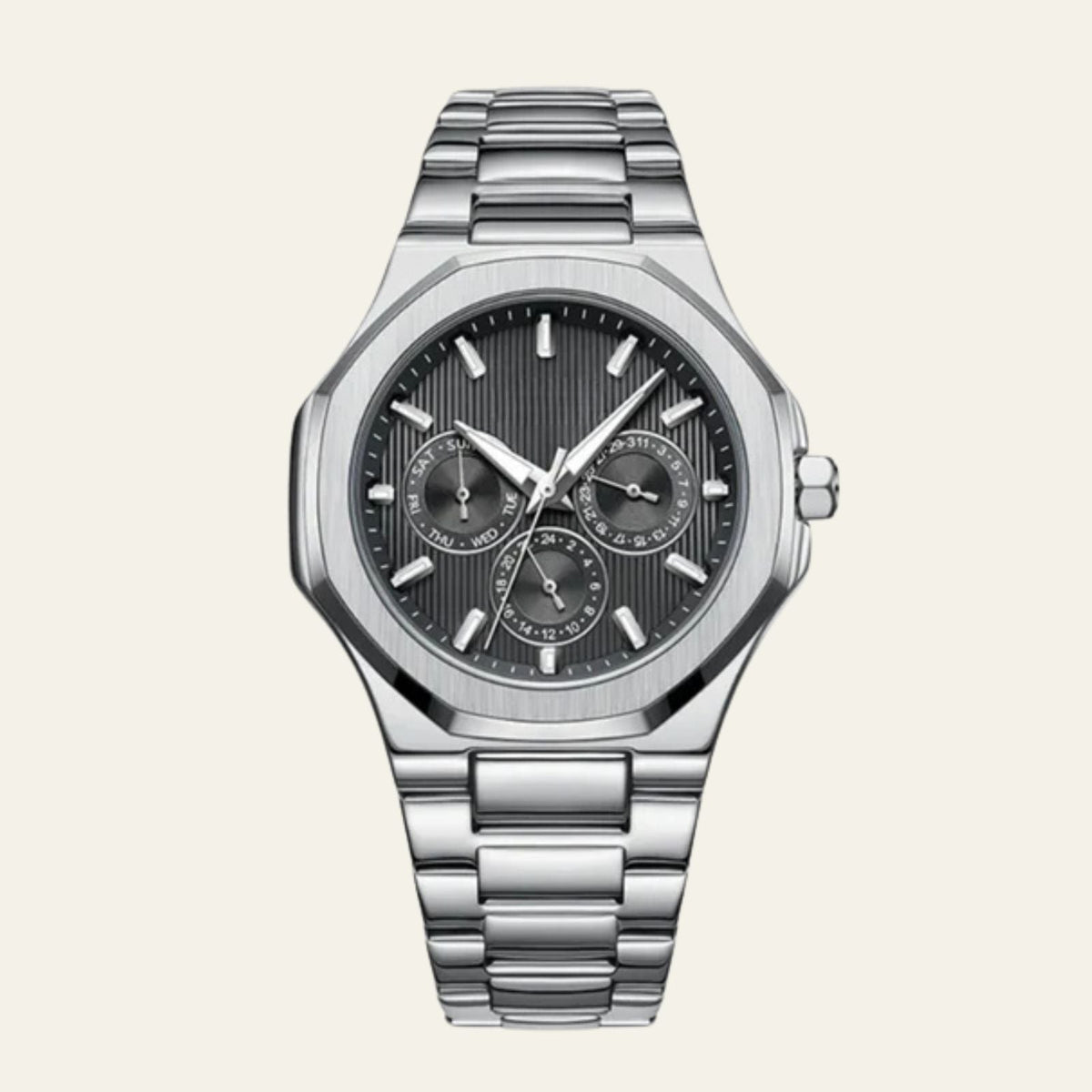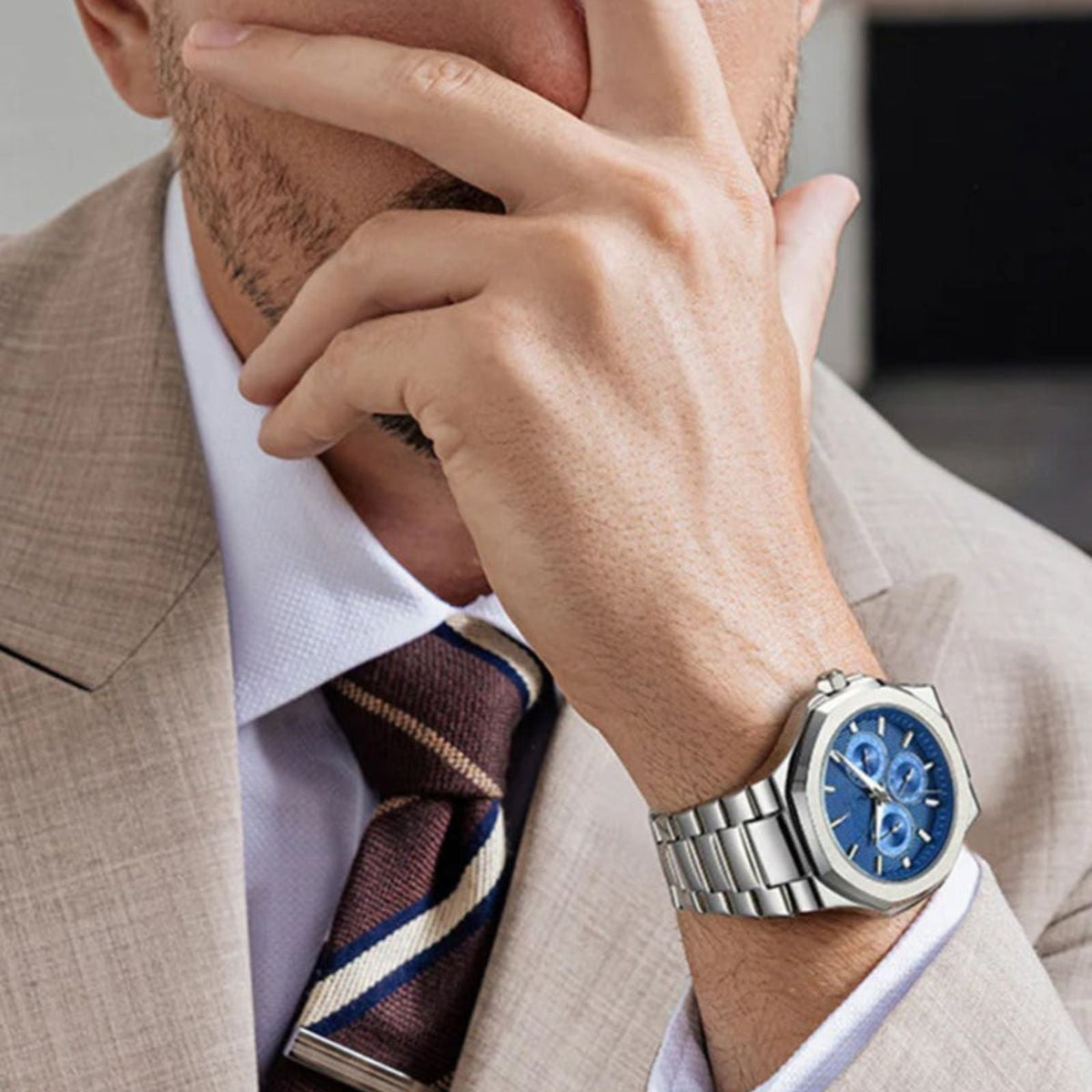 Crafted from premium material, this watch offers an incredibly luxury look that feels amazing on the wrist, without over-paying. It is easy to put it with its click on system, and the size is fully adjustable. Next to that, this watch is waterproof.