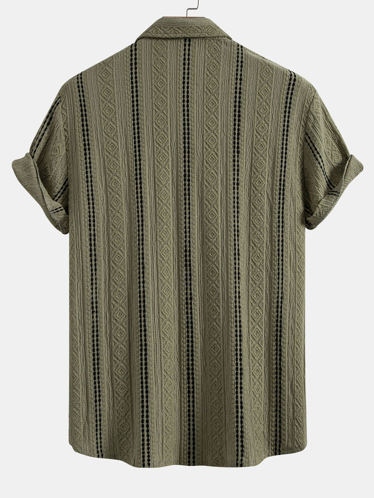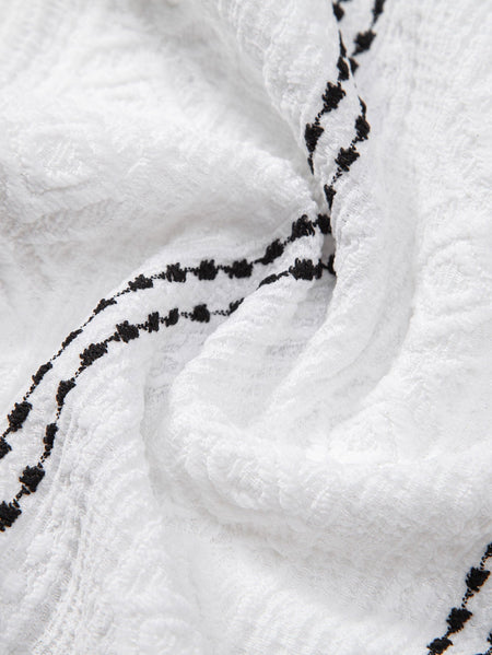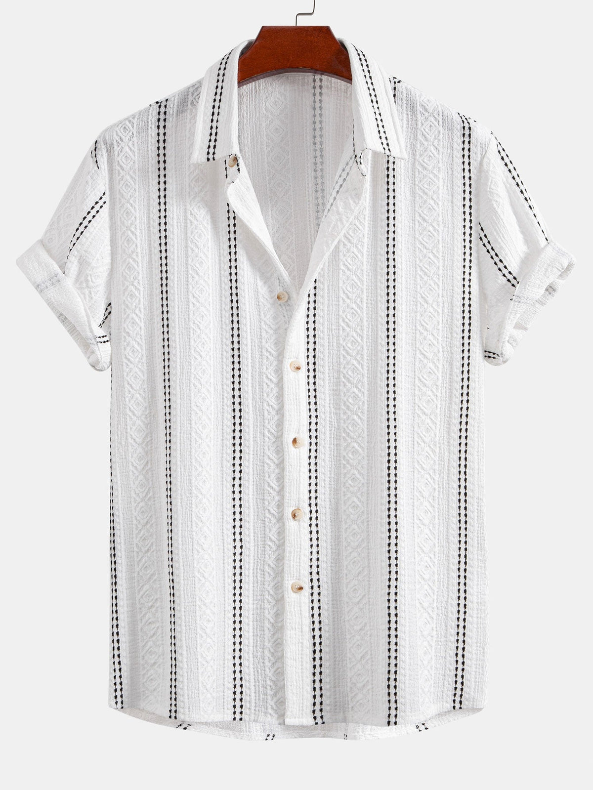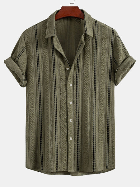 Geometric Striped Jacquard Button Up Shirt & Straight Leg Linen Pants