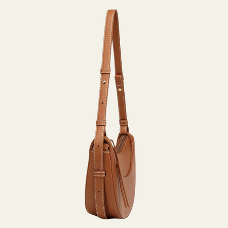 This women’s crossbody bag embodies refined ease with its curved saddle silhouette and clean lines.