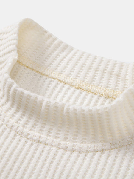 Long Sleeve Waffle Mock Neck T-Shirt & Drawstring Knitted Waffle Pants