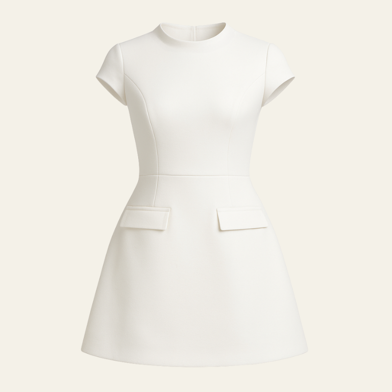A women’s structured mini dress crafted for timeless European elegance and refined minimalism. Featuring a sculpted silhouette with cap sleeves and tailored pocket flaps, it embodies discreet luxury with a polished finish. Perfect for city soirées or heritage gatherings, styled with heels and a statement clutch.