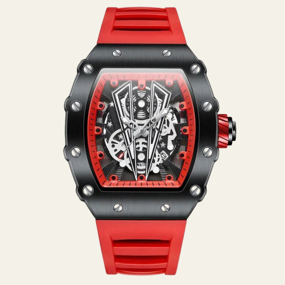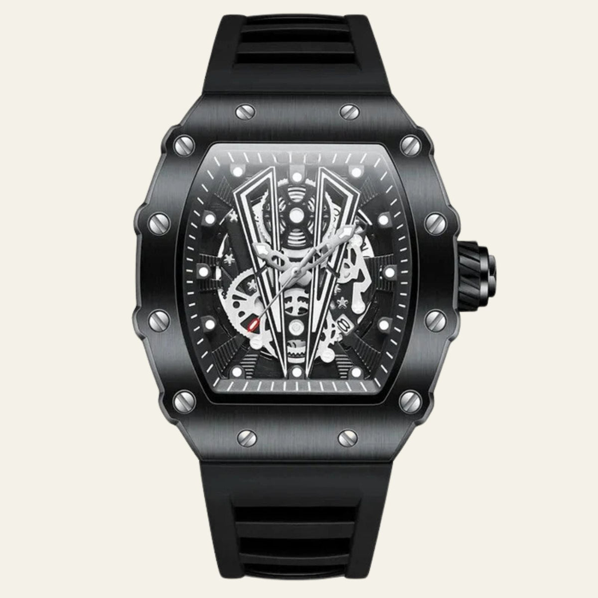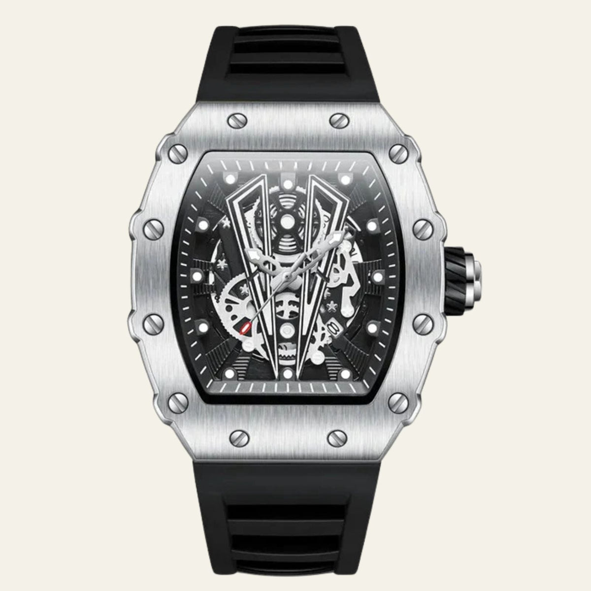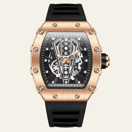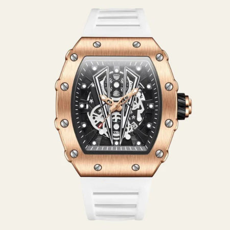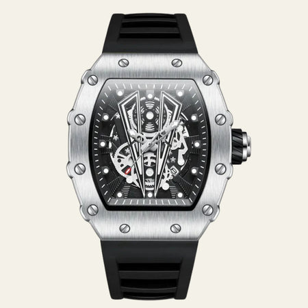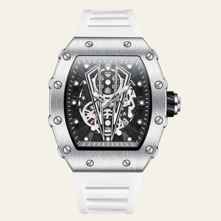 The Marais Skeleton Quartz Watch blends sporty sophistication with cutting-edge functionality. Featuring a robust rubber strap, glow-in-the-dark features, and quartz movement, this timepiece keeps you on time and in style.