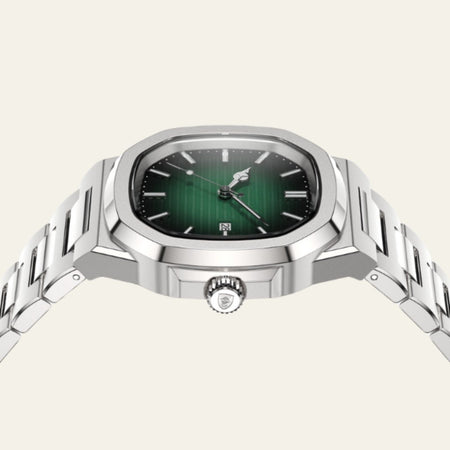 A refined men’s stainless steel automatic watch designed for timeless European elegance and effortless daily wear. The brushed finish and softly structured bracelet bring understated sophistication to any setting. Perfect for city commutes or evening aperitifs, worn easily with a crisp white shirt or layered under a blazer.