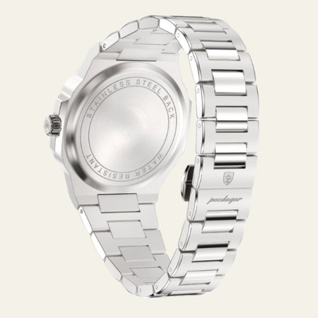 • Material: Stainless Steel Case & Bracelet with Sapphire-Coated Crystal.