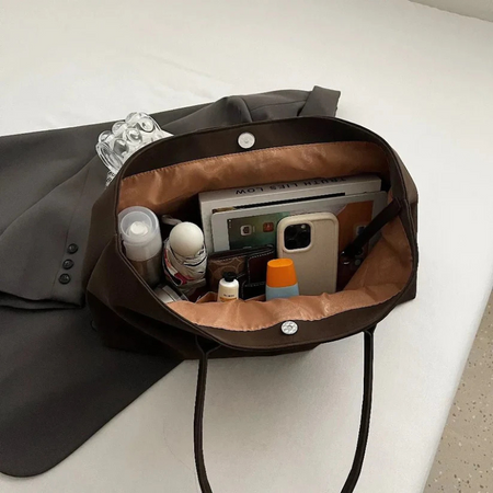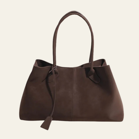 Women’s vegan suede tote bag with a structured silhouette and elongated handles for effortless carry. Crafted in a soft-touch finish with subtle hardware accents, it offers timeless refinement and generous capacity. Perfect for workdays, travel, or everyday elegance, it is a versatile staple in quiet luxury styling.