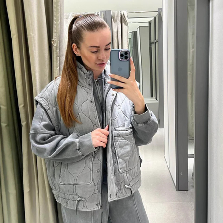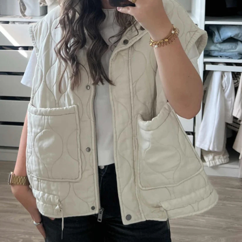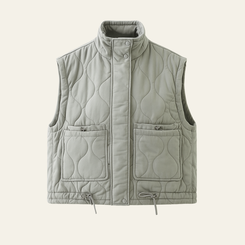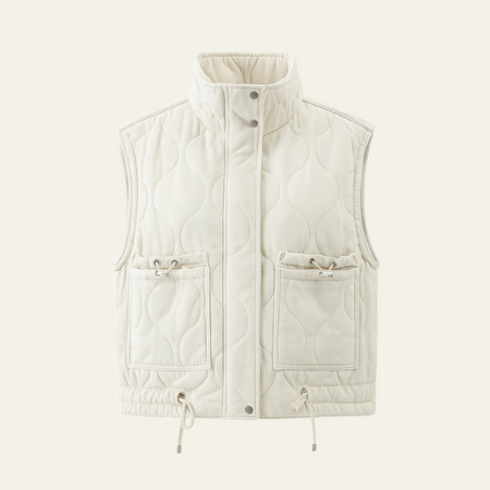 Womens cotton quilted vest crafted for timeless layering and transitional style.