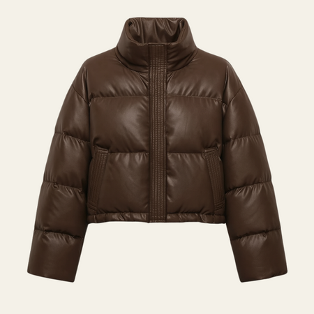 Womens down puffer jacket crafted for lightweight warmth and refined winter style.