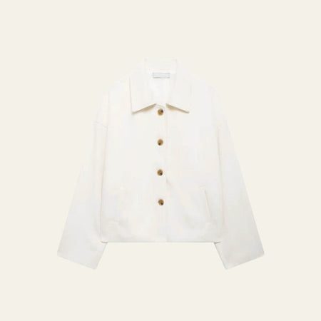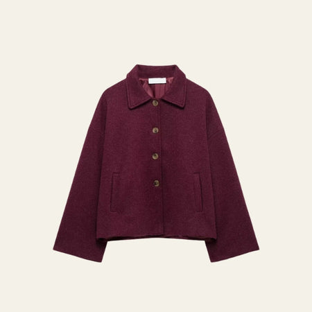 Womens cropped wool coat with button closure, designed for refined autumn layering.