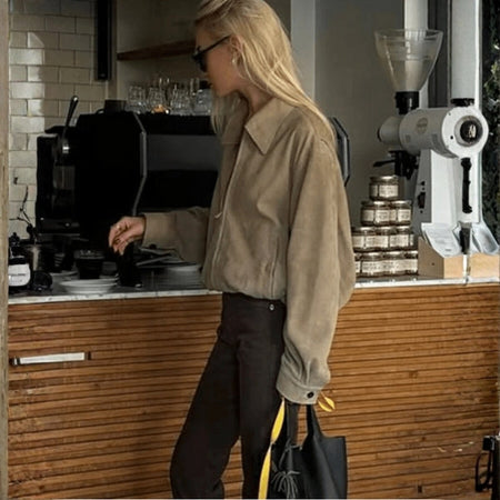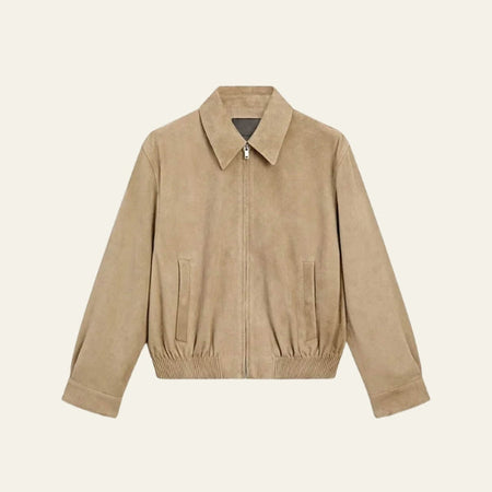 Crafted with supple suede and a relaxed zip-front silhouette, it delivers understated luxury.