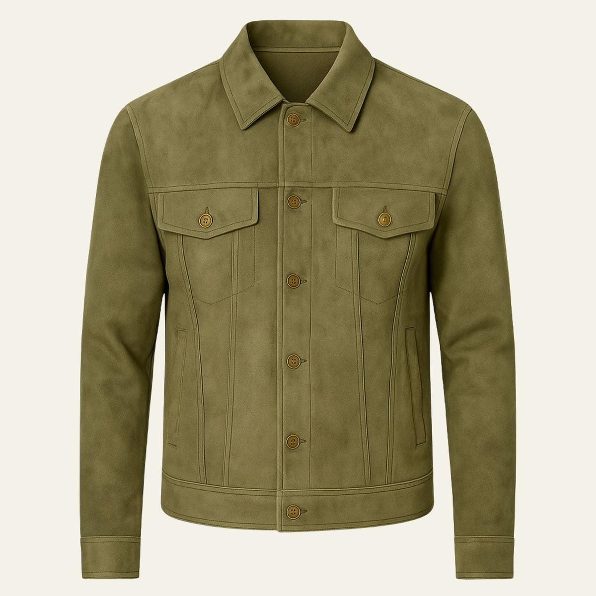 A men’s suede lapel jacket designed for timeless European elegance and effortless versatility. With a softly structured drape and rich texture, it delivers refined warmth for any season. Perfect for countryside weekends, autumn strolls, or layered over tailoring for a smart-casual edge.