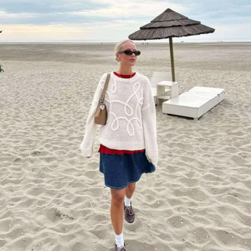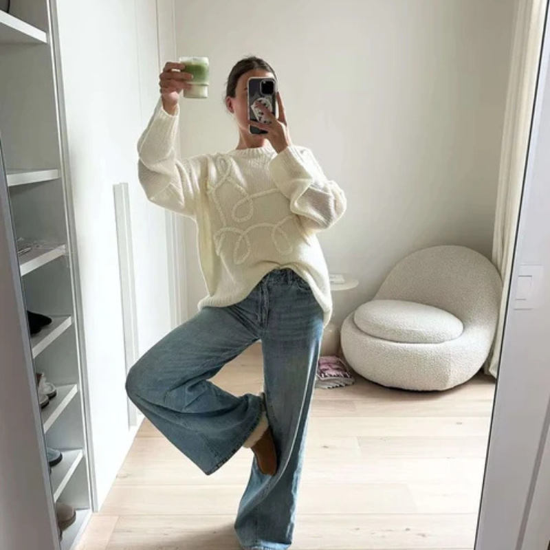 Soft knit with sculptural detailing adds texture and understated luxury.