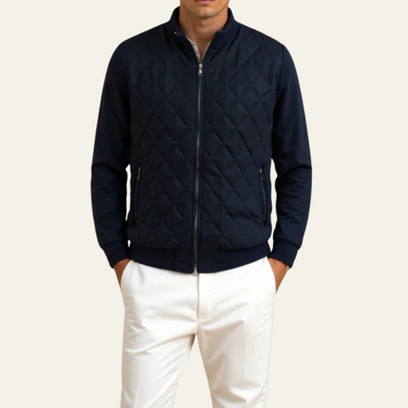 Lightweight yet structured, its diamond quilting adds texture with quiet sophistication.
