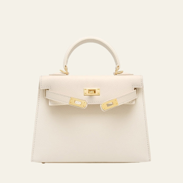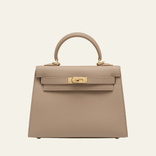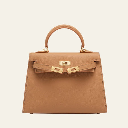 Womens genuine leather handbag with a structured silhouette for refined elegance.