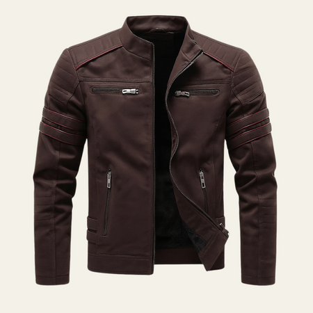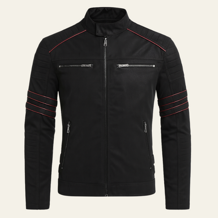 This men’s biker jacket brings a refined edge to modern wardrobes with its structured silhouette and quiet luxury appeal.