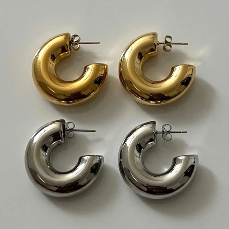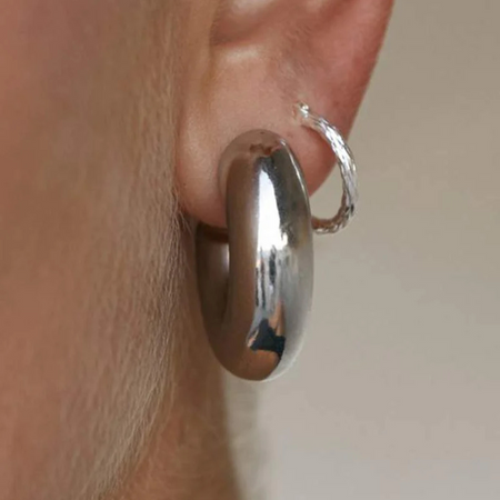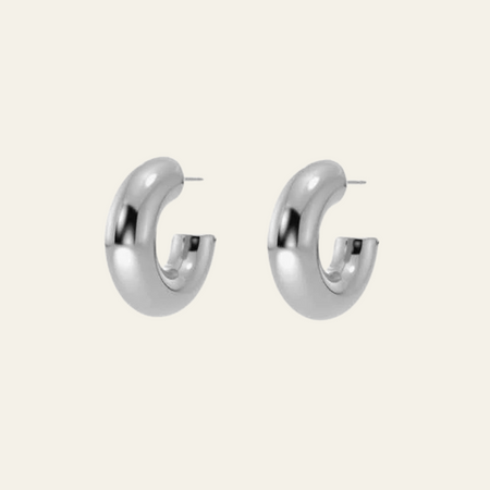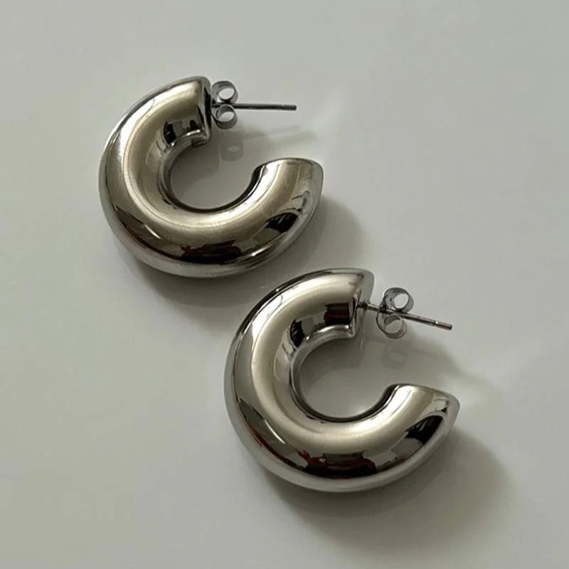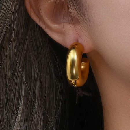 Women’s chunky hoop earrings designed with a sculptural silhouette for a bold yet timeless look. Polished in high-shine gold or silver tones, they bring refined elegance with everyday versatility. Ideal for elevating minimalist outfits or pairing with evening ensembles for quiet statement glamour.