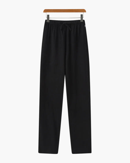 Marrakech Linen Pantalon (Slim Fit): High-rise, full-length trousers with an elasticated drawstring waist and tapered leg for a tailored finish