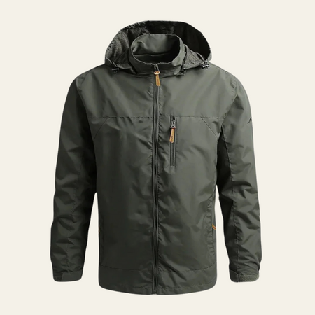 This men’s hooded rain jacket delivers reliable weather protection with a clean, modern look.