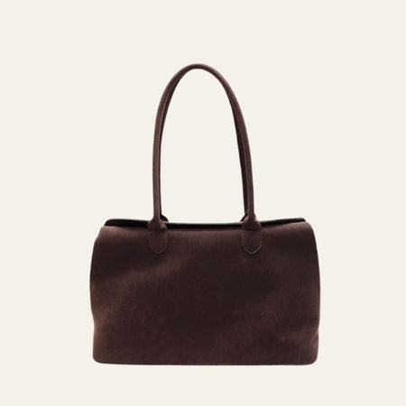 A womens suede shoulder bag crafted with timeless elegance and modern utility.