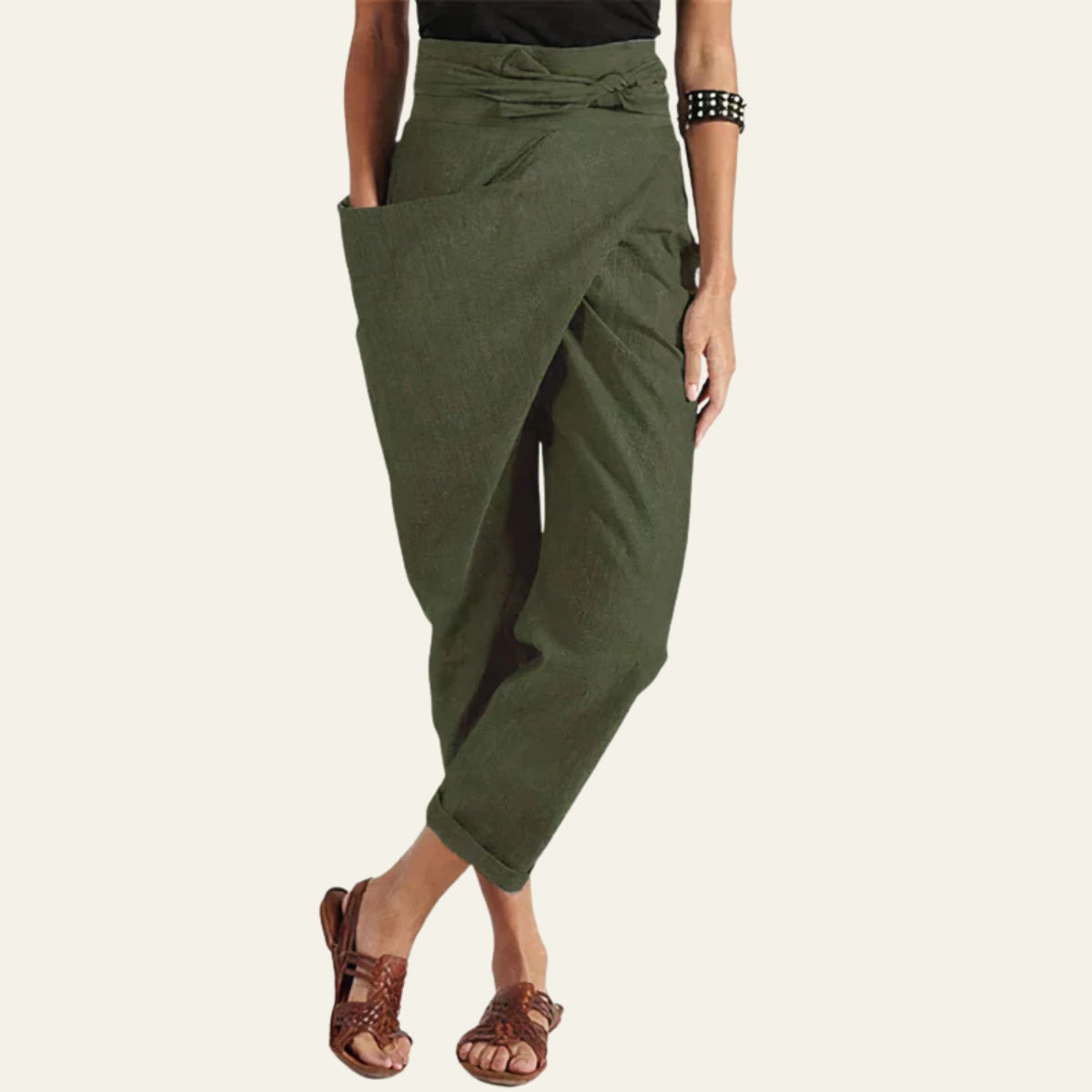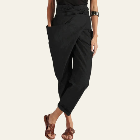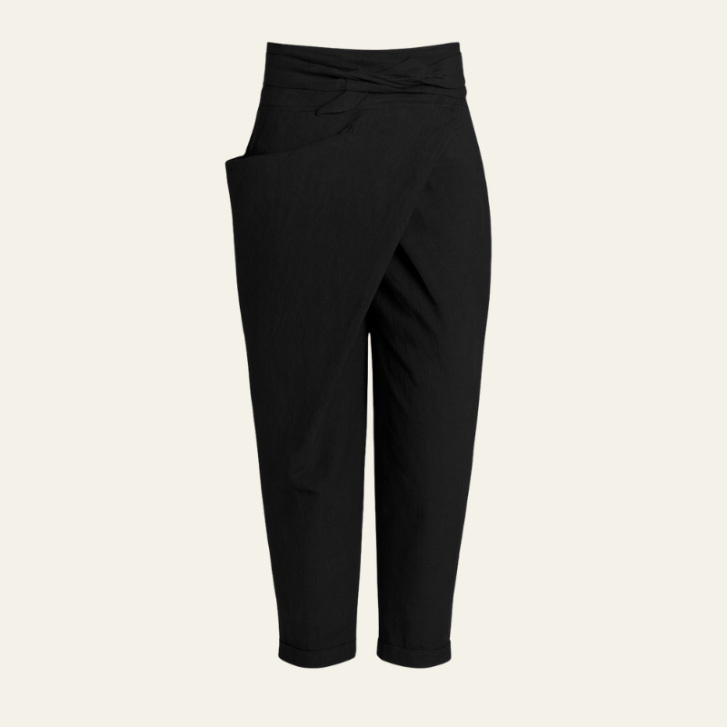 Womens wrap trousers designed for effortless movement and contemporary lifestyle.