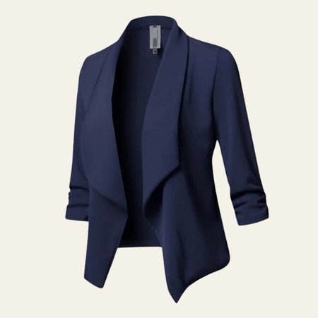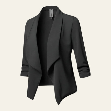Womens drape-front blazer crafted for modern elegance and versatile sophistication.