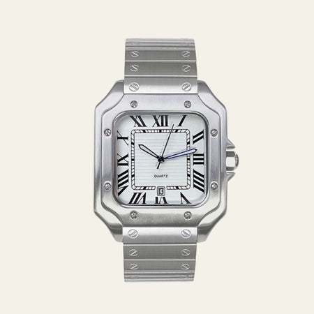 Inspired by the timeless allure of European heritage and the precision of modern engineering, the Verona Signature Watch is a refined essential for the discerning gentleman. With its squared Roman numeral dial, sculpted case, and brushed steel construction, it strikes the perfect balance between classical charm and contemporary elegance. Whether worn in boardrooms or by candlelight, it carries quiet confidence across every occasion.