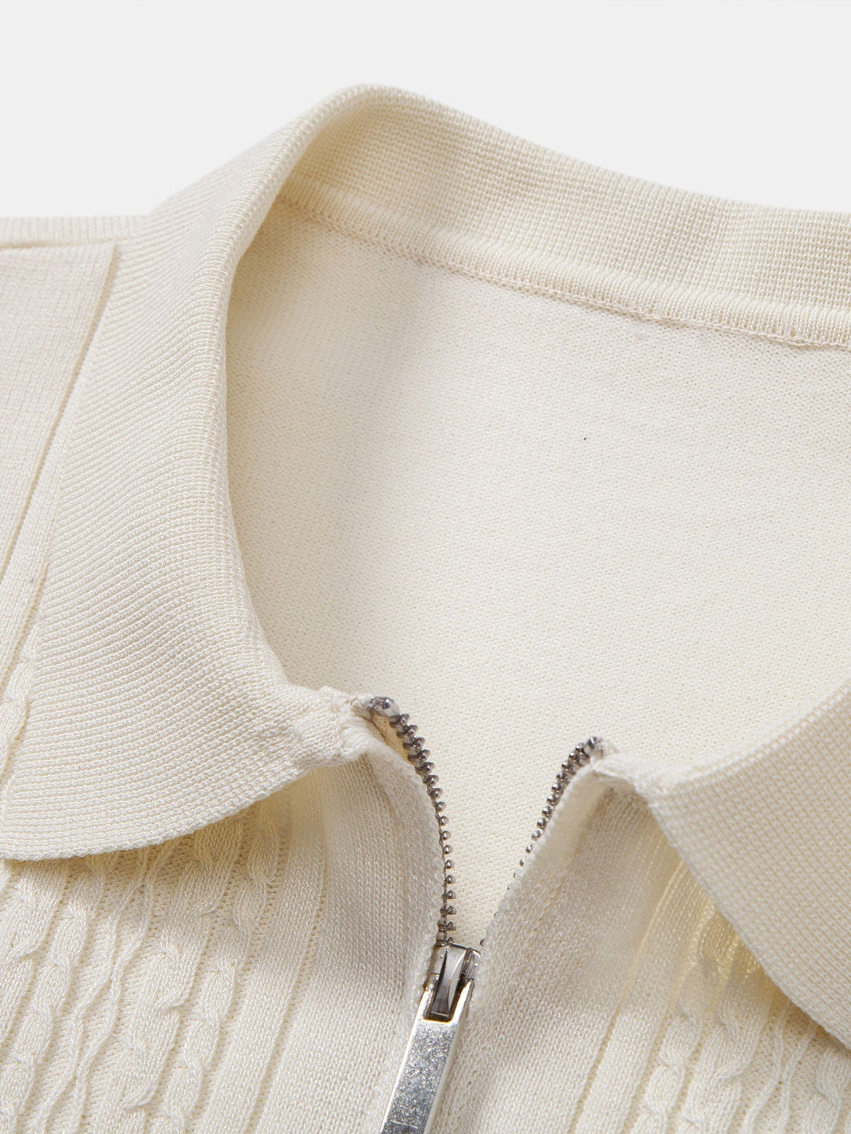 Twist Jacquard Knitted Zipper Polo Shirt & Slim Fit Tapered Trousers