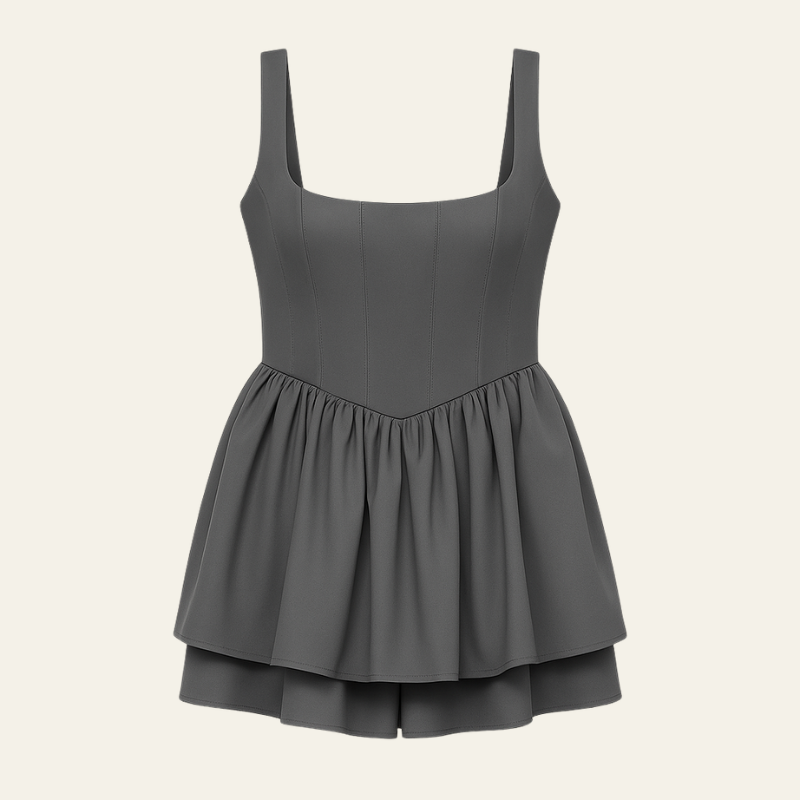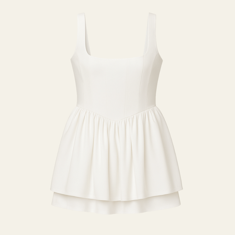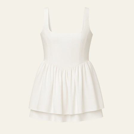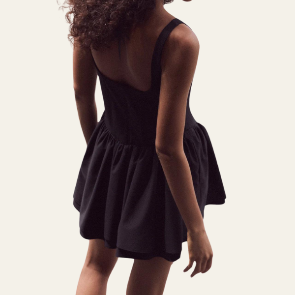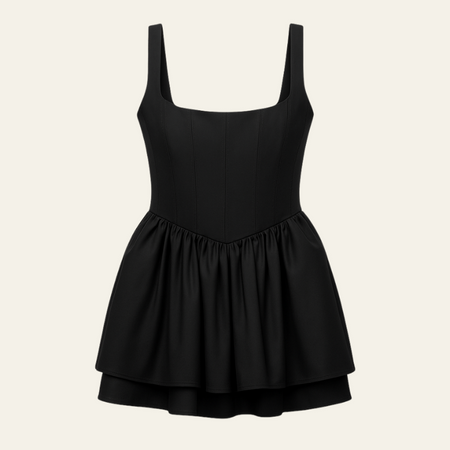 This women’s corset mini dress embodies refined evening allure with its sculpted bodice and softly flared skirt. Structured seaming creates a cinched waistline while the layered skirt adds subtle movement. Perfect for cocktail soirées or elevated city nights styled with heels and statement jewelry.