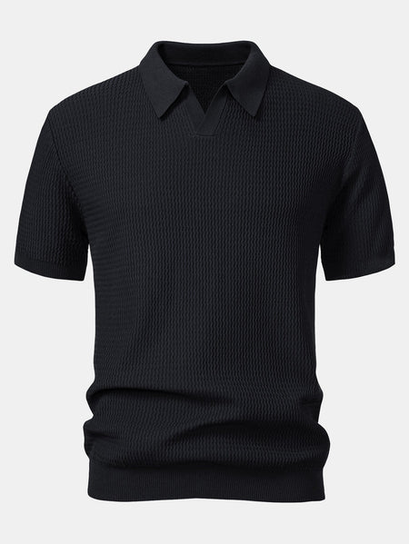 Wave Jacquard Knit V Neck Polo Shirt & Slim Fit Tapered Trousers