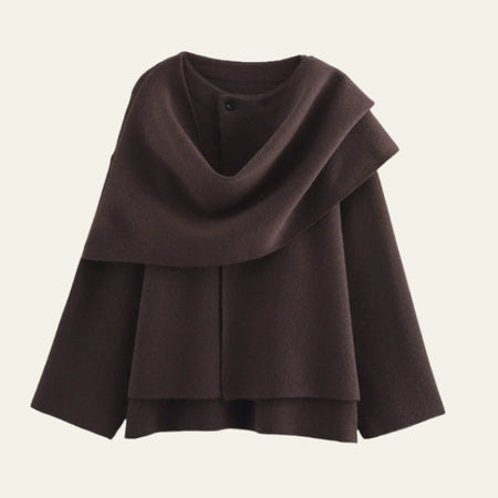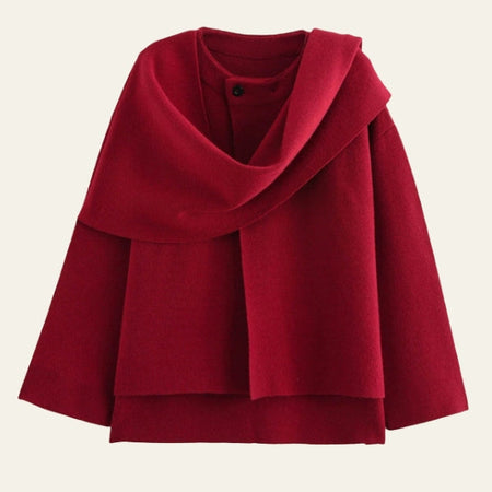 Womens wool jacket with a sculptural draped collar designed for timeless sophistication.